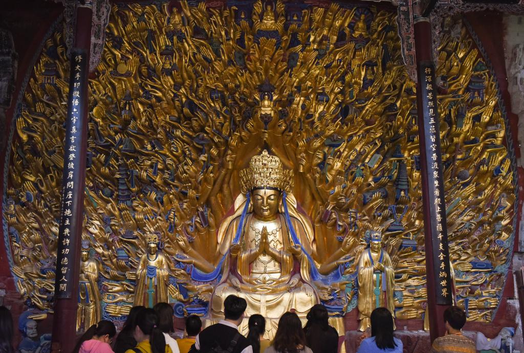 1952年,大足石刻文物保護機構(gòu)成立,開始系統(tǒng)科學保護大足石刻。當年,北山石刻保護長廊啟動建設(shè),北山石刻上方加蓋了擋雨的頂棚;1961年,北山、寶頂山摩崖造像成為第一批全國重點文物保護單位;1999年,大足石刻被列入《世界遺產(chǎn)名錄》;2015年,全國石質(zhì)文物保護一號工程——大足石刻千手觀音造像搶救性保護工程竣工;2019年,《大足石刻全集》出版,填補了國內(nèi)石窟寺編寫出版大型考古報告的空白……