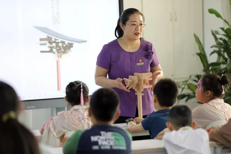 在古建小課堂斗拱搭建中,省博物院老師選取中國古代建筑最關(guān)鍵也是最有特色的斗拱為原型,指導(dǎo)同學(xué)們制作了五臺山佛光寺唐代斗拱模型。不僅可以了解山西古代輝煌燦爛的建筑文化,還可以親自動手,體驗唐代斗拱的搭建,感受古代木作匠師的智慧,增進對中國古代建筑文化的了解。