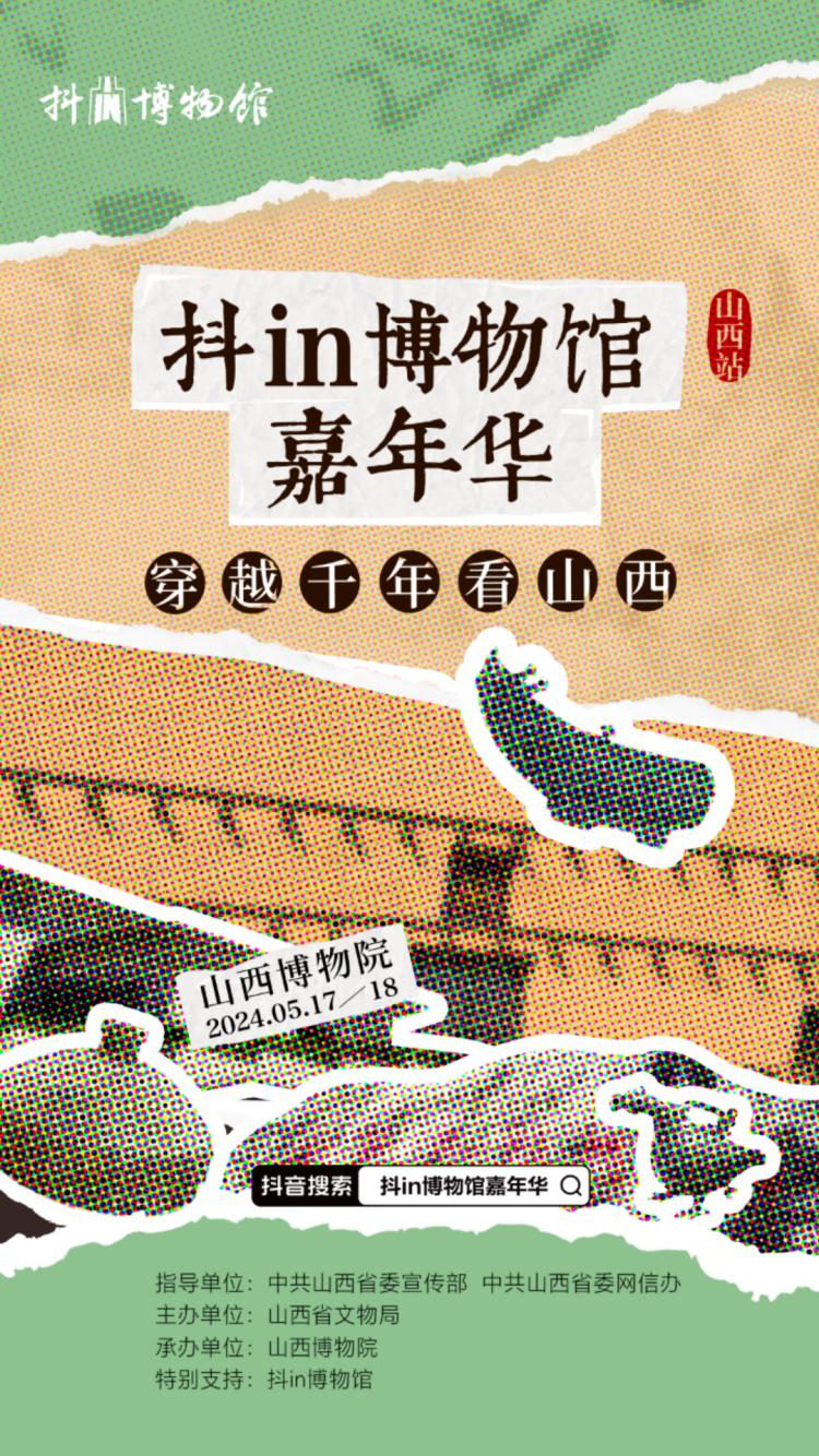 黃河新聞網(wǎng)訊(記者趙晗琳)在“5·18國際博物館日”到來之際,穿越千年看山西-抖音文博季啟動儀式暨2024年首屆抖in博物館嘉年華開幕式將于5月17日在山西博物院舉辦。本次活動由中共山西省委宣傳部、中共山西省委網(wǎng)信辦指導(dǎo),山西省文物局主辦,山西博物院承辦,抖in博物館提供特別支持。