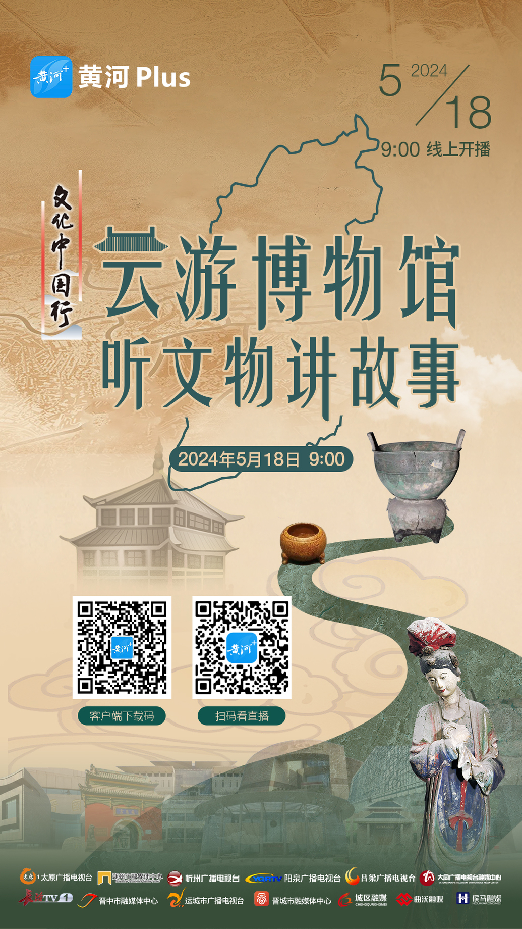 5月18日上午9時(shí),山西廣播電視臺(tái)視聽融媒體中心黃河Plus客戶端將聯(lián)合山西廣播電視臺(tái)晉南工作站、侯馬市融媒體中心、大同廣播電視臺(tái)融媒體中心、朔州市融媒體中心、忻州廣播電視臺(tái)、陽泉廣播電視臺(tái)新聞綜合頻道、呂梁廣播電視臺(tái)、晉中市融媒體中心、太原廣播電視臺(tái)新聞事業(yè)部、長治廣播電視臺(tái)新聞綜合頻道、晉城市融媒體中心、晉城市城區(qū)融媒體中心、運(yùn)城市廣播電視臺(tái)融媒體新聞中心、曲沃縣融媒體中心等15家執(zhí)行媒體單位(排名不分先后),對此次直播活動(dòng)進(jìn)行全方位推介,敬請期待!