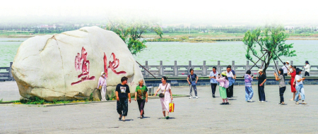 5月19日,游客在運(yùn)城市鹽湖觀景臺參觀游覽。閆鑫攝