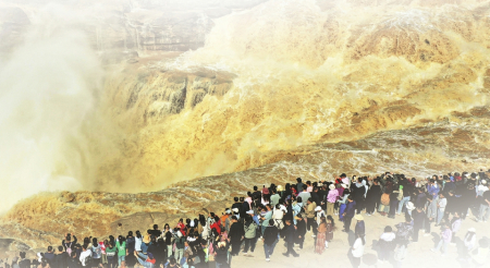 “壺口”的稱謂,最早見于《尚書·禹貢》中,如“既載壺口,治梁及岐”“壺口、雷首,至于太岳”,都與傳說中大禹治水的路線與策略有關(guān),壺口是大禹治水的始發(fā)之地。黃河壺口瀑布旅游區(qū)是國家5A級(jí)旅游景區(qū),是中國第二大瀑布,全世界最大的黃色瀑布。站在壺口觀景臺(tái)往上看,只見洶涌的黃河水簇?fù)碇?、吶喊著撲到眼前,其?shì)如千軍萬馬,漫山遍野般涌來,到了壺口,那一排排的巨浪在翻著水花馳騁飛奔中,突然墜入深坑,發(fā)出了震耳的嘶鳴聲,濺起了漫天水霧,再簇?fù)碇枷蜻h(yuǎn)方……而此時(shí)的你,只會(huì)感覺到大自然的偉岸和自己的渺小。
