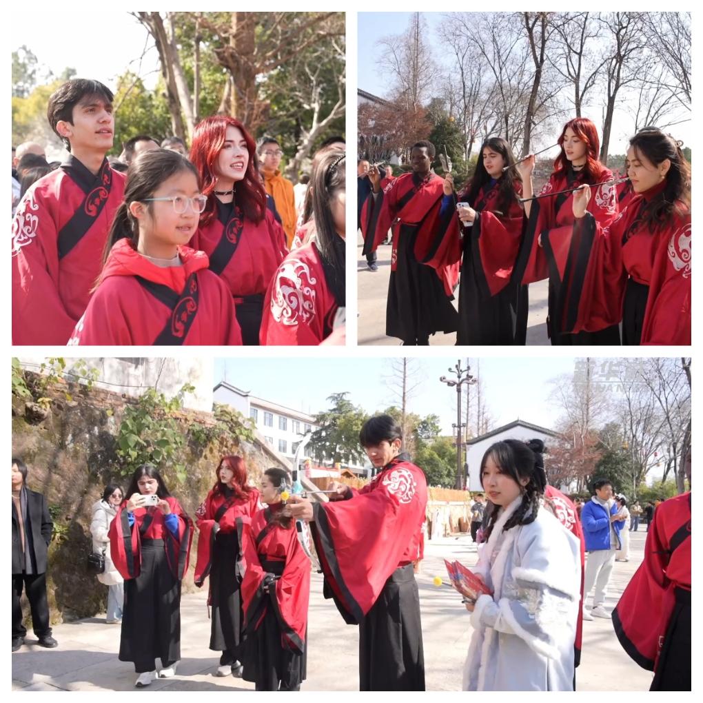 春節(jié)期間,來(lái)自浙江師范大學(xué)的10多位留學(xué)生在浙江金華參加了“我在中國(guó)過(guò)春節(jié)”的體驗(yàn)項(xiàng)目。他們身著漢服,到金華府文廟,向孔子像行拜師禮,并在新年祈福牌上書(shū)寫(xiě)新年愿景。