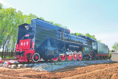 如今,大東溝成了煤礦生產(chǎn)設(shè)備的“露天博物館”,陳列著井下使用過的綜采支架、掘進機、齒軌車、風(fēng)機、高壓開關(guān)、移動變電站、礦用潛水泵等40余種、近300件設(shè)備,為中國煤礦不同歷史發(fā)展階段保留了珍貴標(biāo)本。其中,有兩處展品更為引人注目:一是一臺時速80公里、牽引力324千牛的前進型蒸汽機車,1975年由大同機車廠生產(chǎn),1994年由潞安集團統(tǒng)一安排承擔(dān)石圪節(jié)煤礦和兄弟礦井的煤炭外運及漳澤電廠的煤炭直送任務(wù),是潞安集團首批鐵路運輸牽引機車,直到2007年機車轉(zhuǎn)型升級后停用。如今,這臺蒸汽機車已經(jīng)成為一代人的記憶,也是不少人打卡的網(wǎng)紅地標(biāo)。還有一處是給人留下深刻印象的軌道墻。兩道長6米的水泥墻,墻體里鑲嵌著從石圪節(jié)井下運上來的標(biāo)有不同年代的道軌,如產(chǎn)于1902年的德國道軌、產(chǎn)于1905年的比利時道軌、產(chǎn)于1915年的由漢陽鐵廠制造的道軌等。這些標(biāo)有生產(chǎn)年代的道軌,當(dāng)年在井下作為支撐物或巷道頂棚使用,如今成為石圪節(jié)煤礦發(fā)展歷程的見證,默默地向人們訴說石圪節(jié)開采歷史的久遠(yuǎn)。