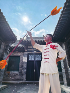 “風(fēng)火流星”是集山西民間雜技與武術(shù)精髓于一體的社火表演藝術(shù),2008年入選國(guó)家級(jí)非物質(zhì)文化遺產(chǎn)代表性項(xiàng)目名錄。它以繩索系鐵籠,內(nèi)置燃燒木炭,表演者通過手、肩、腰等部位的協(xié)調(diào)發(fā)力,讓鐵籠高速旋轉(zhuǎn),呈現(xiàn)出“風(fēng)助火勢(shì)、火借風(fēng)威”的視覺效果。