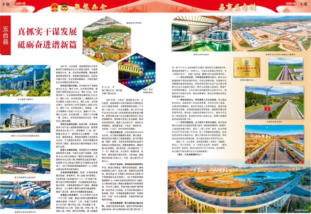 承載能力有效提升。大力開展學(xué)習(xí)運用“千萬工程”經(jīng)驗、推進(jìn)以縣城為重要載體的城鎮(zhèn)化建設(shè)“雙試點”工作,實施了總投資20.7億元的一攬子民生工程,涉及道路17條、管網(wǎng)改造63.6公里、醫(yī)院2座、學(xué)校3座、養(yǎng)老院1座。同時,順應(yīng)百姓期盼,投入新能源車17臺,開通了城區(qū)公交,極大地方便了群眾出行。2025年是“十四五”規(guī)劃收官之年。五臺縣委、縣政府將以習(xí)近平新時代中國特色社會主義思想為指導(dǎo),全面貫徹落實黨的二十大和二十屆二中、三中全會精神,深入學(xué)習(xí)習(xí)近平總書記對山西工作的重要講話重要指示精神,按照市委五屆八次全會暨市委經(jīng)濟(jì)工作會議部署要求,堅持穩(wěn)中求進(jìn)工作總基調(diào),推動經(jīng)濟(jì)持續(xù)向好,提高人民生活水平,保持社會和諧穩(wěn)定,高質(zhì)量完成“十四五”規(guī)劃任務(wù),為實現(xiàn)“十五五”良好開局打牢基礎(chǔ)。