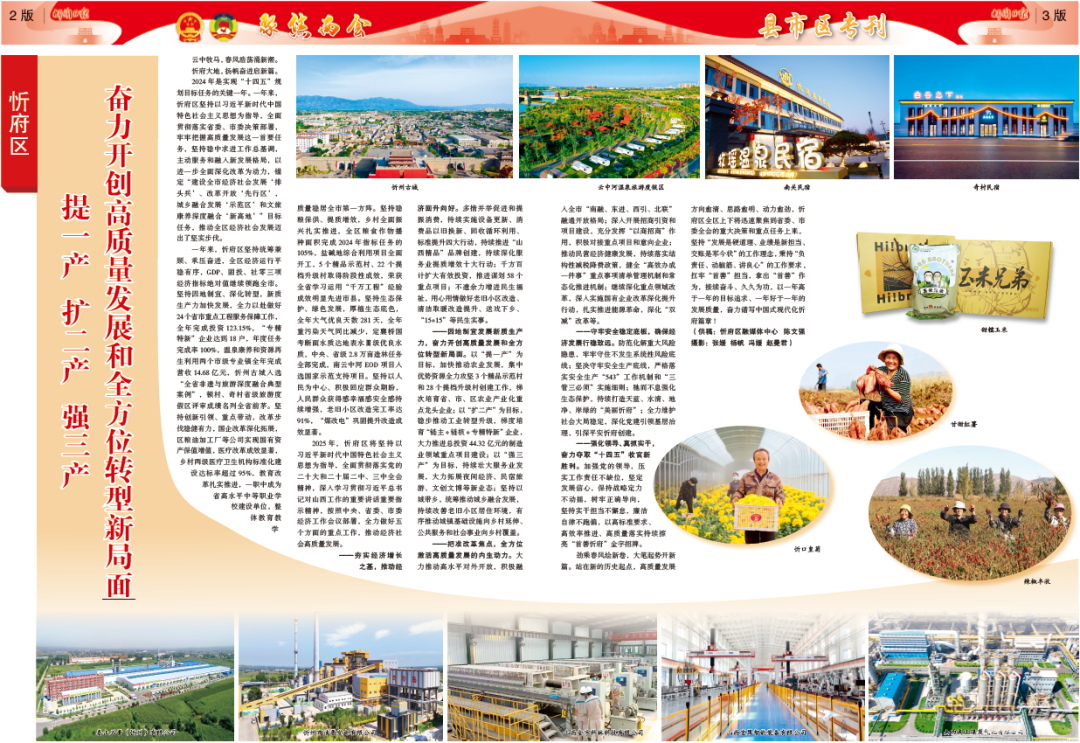 2025年,忻府區(qū)將堅持以習(xí)近平新時代中國特色社會主義思想為指導(dǎo),全面貫徹落實黨的二十大和二十屆二中、三中全會精神,深入學(xué)習(xí)貫徹習(xí)近平總書記對山西工作的重要講話重要指示精神,按照中央、省委、市委經(jīng)濟工作會議部署,全力做好五個方面的重點工作,推動經(jīng)濟社會高質(zhì)量發(fā)展。