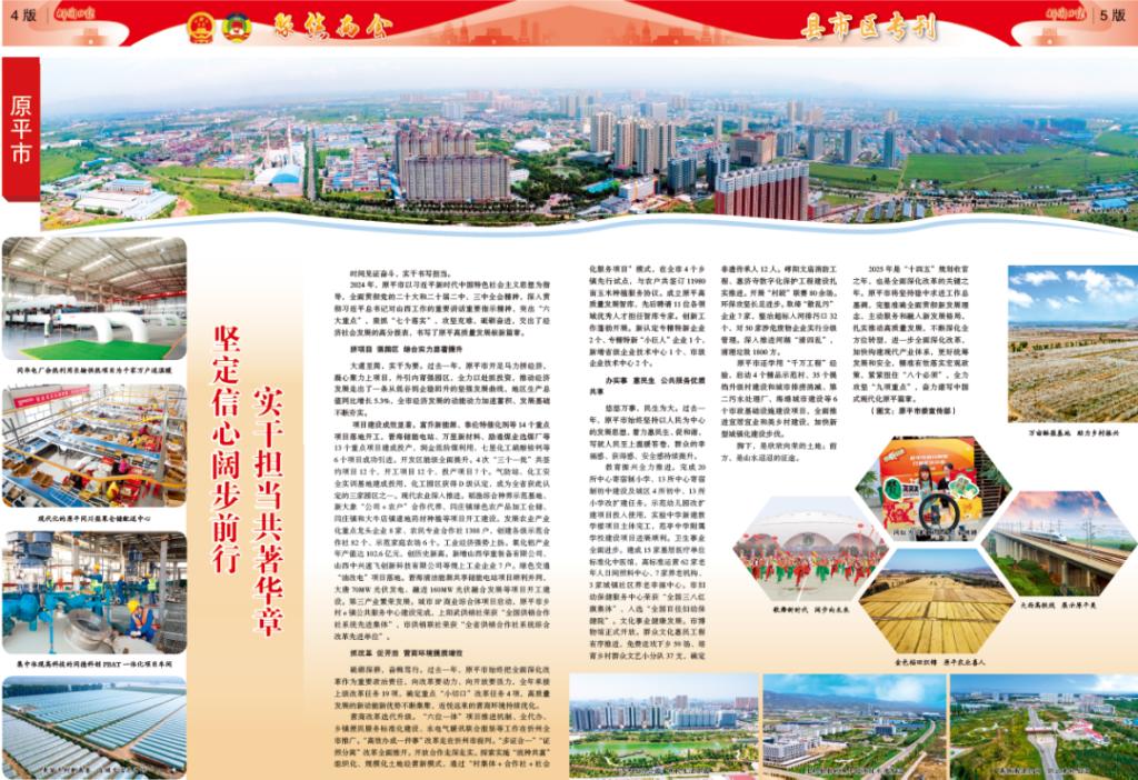 2024年,原平市以習近平新時代中國特色社會主義思想為指導,全面貫徹黨的二十大和二十屆二中、三中全會精神,深入貫徹習近平總書記對山西工作的重要講話重要指示精神,突出“六大重點”,狠抓“七個落實”,攻堅克難,砥礪奮進,交出了經濟社會發(fā)展的高分報表,書寫了原平高質量發(fā)展嶄新篇章。