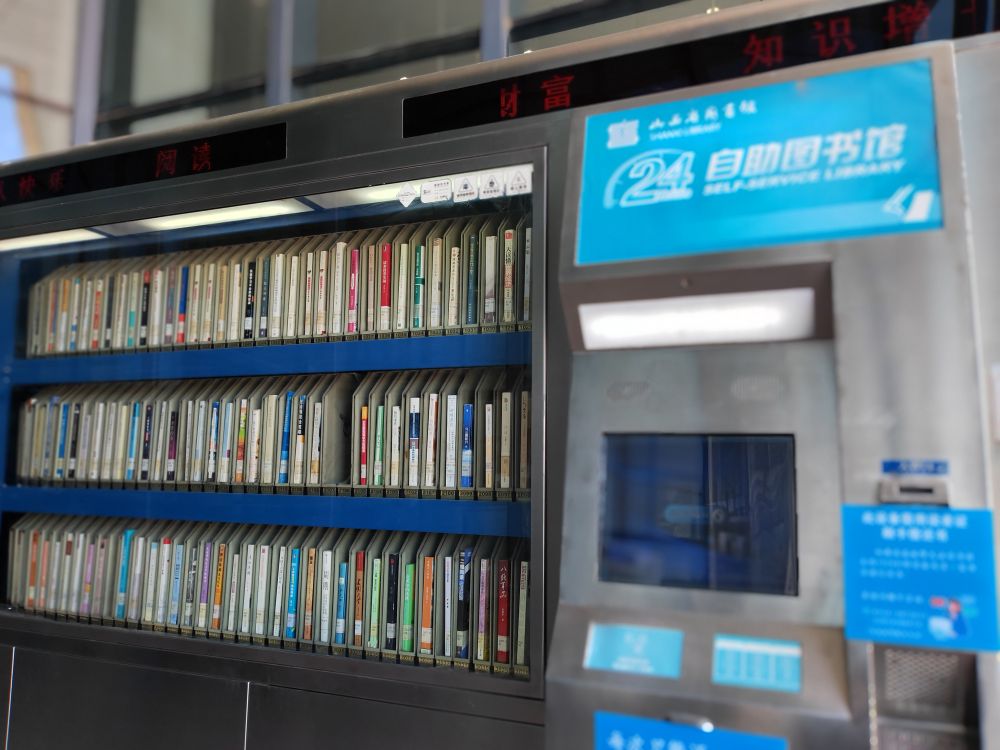 這是4月22日拍攝的山西省圖書館門口的24小時自主借閱機。新華社記者 解園 攝