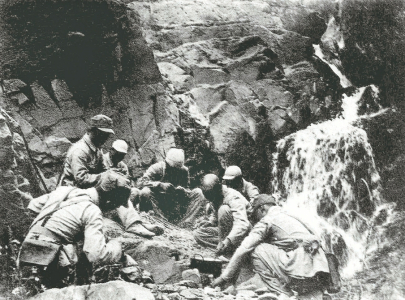 八路軍某部和群眾一起采集樹葉充饑,堅持抗戰(zhàn)。