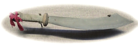 1941年,9歲的劉胡蘭上了抗日民主政府辦的冬學(xué)。1942年,劉胡蘭擔(dān)任了兒童團(tuán)長(zhǎng)。就是握著這把木制大刀,她經(jīng)常帶領(lǐng)小伙伴們站崗放哨,掩護(hù)抗日干部。